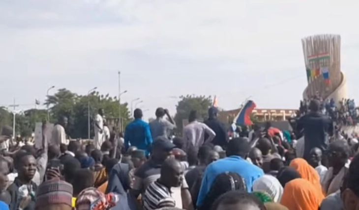 Демонстрантите шетаа по улиците на главниот град Ниамеј, веејќи руски знамиња и извикувајќи го името на рускиот претседател Владимир Путин во знак на протест против поранешната колонијална сила Франција.