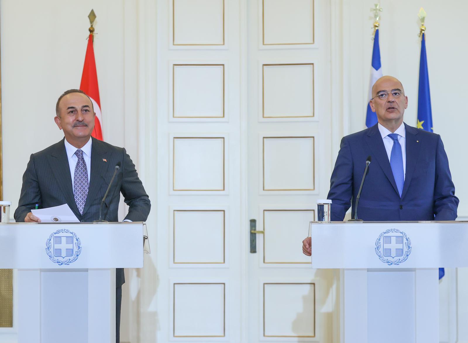 Шефот на турската дипломатија, утрово беше примен од грчкиот премиер Кирјакос Мицотакис, а по средбата, заедно со Дендиас од премиерската палата се упатија пеш кон грчкото МНР што е на оддалеченост од околу 500 метри.