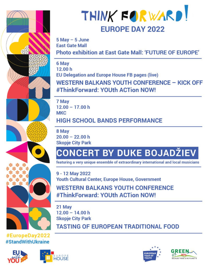 Делегацијата на Европската Унија заедно со Европската куќа ќе го одбележат Денот на Европа 2022 година преку низа активности организирани под слоганот #ThinkForward.