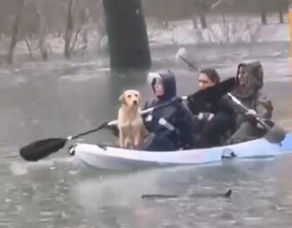 Девојки со кајак спасија напуштени кучиња од поплавена куќа во Никшиќ (Видео)