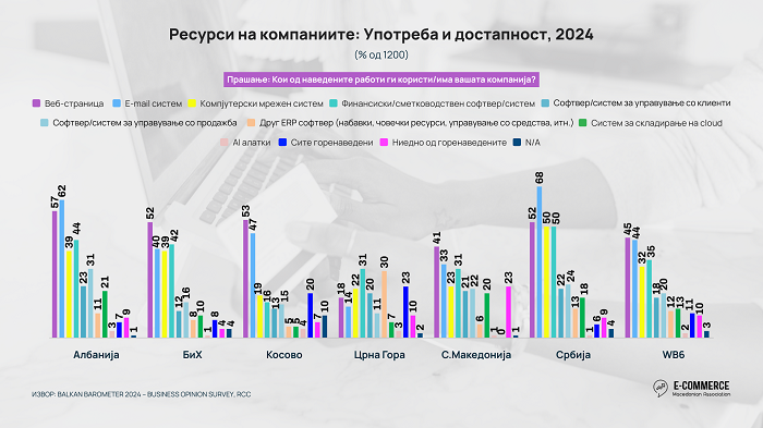 Во Прегледот на Е-трговијата во Западен Балкан, 2025 година изработен од Асоцијацијата за е-трговија, анализирани се податоците од анкетата во Бизнис барометарот за Западен Балкан 2024, спроведен од Регионалниот совет за соработка (RCC), која обезбедува редовен увид во состојбата, очекувањата и дигиталната подготвеност на компаниите во регионот.