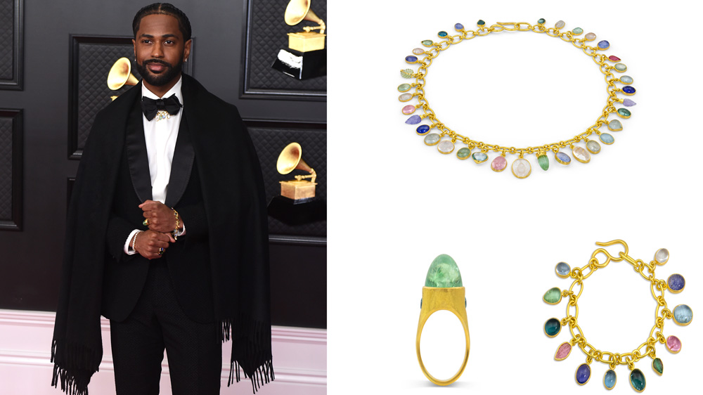 И инди-златарите го добија својот момент на наградите Греми. Дизајнерката Лорен Теетели од брендот Лорен Никол , го имаше своето прво појавување на црвениот килим со Биг Шон. Раперот, пејачот и текстописецот избра елегантен смокинг од Зења-а од накит ѓердан од 22-каратно злато со повеќебојни скапоцени камења како смарагд, рок-кристал, турмалин, аквамарин, танзанит, морганит, думортиерит и перидот. Тој носеше соодветна нараквица од 18.000 американски долари и прстен од жолто злато од 22 каратни кој чини 11.350 американски долари . (според агенциите)