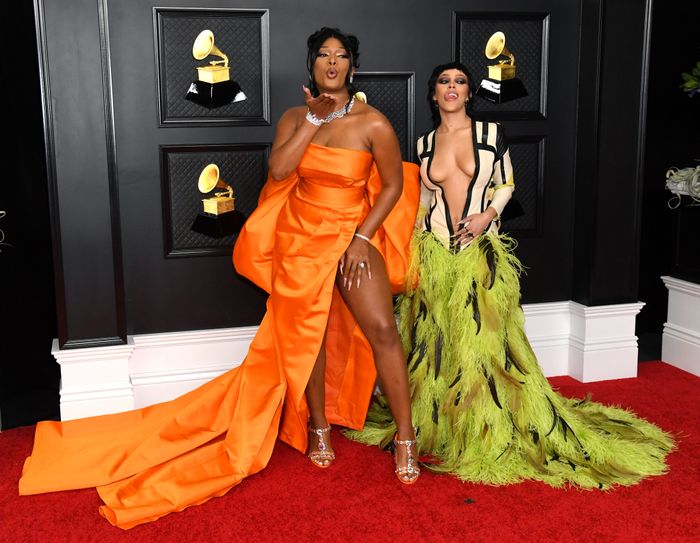 Меган Ти Сталион не само што освои три Греми награди за најдобар нов изведувач, за најдобра рап изведба („Savage“, Megan Thee Stallion со Бијонсе) и за најдобра рап песна (исто така за „Savage“), таа тоалетата на „Долче и Габана“ ја дополни со кралски накит „Шопард“. Дијамантскиот ѓердан од колекцијата „Црвениот тепих“ на брендот,има неверојатни 91,70 карати дијаманти поставени во 18-каратно бело злато и дијамантска нараквица од 83,42 карати, во бело 18-каратно бело злато . Овие две парчиња ги дополни со 33,8 карати дијаманти во облик на круша, поставени во бело 18-каратно злато и дијамантски прстен со крупен брилијантен рез од 3,31 карати, опкружен со 6,47 карати дијаманти, исто така поставено во бело злато од 18 карати. Јасно е дека таа дојде да победи.