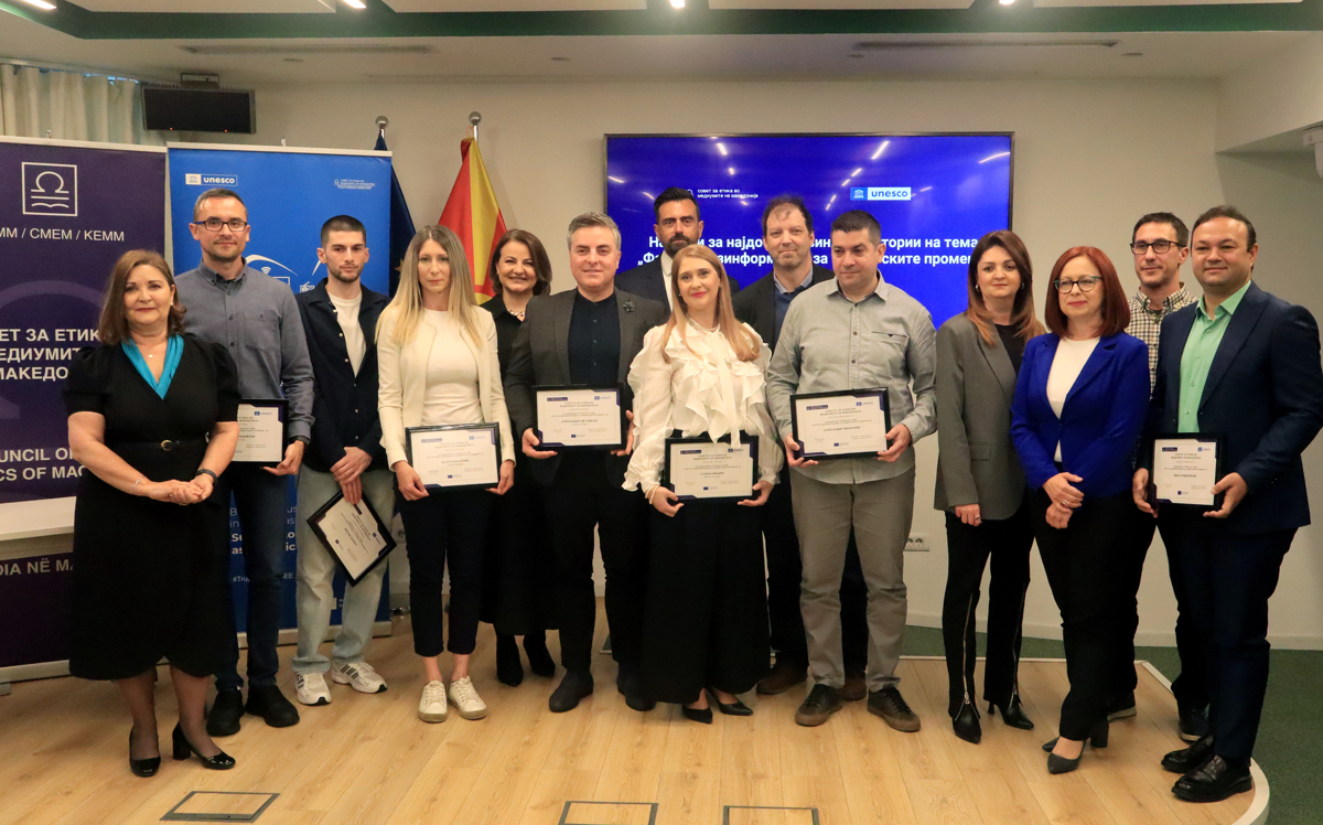Награди за најдобри новинарски стории на тема „Факти и дезинформации за климатските промени“, објавени во периодот мај 2025 – април 2026 година, додели денеска Советот за етика во медиумите на Македонија (СЕММ).