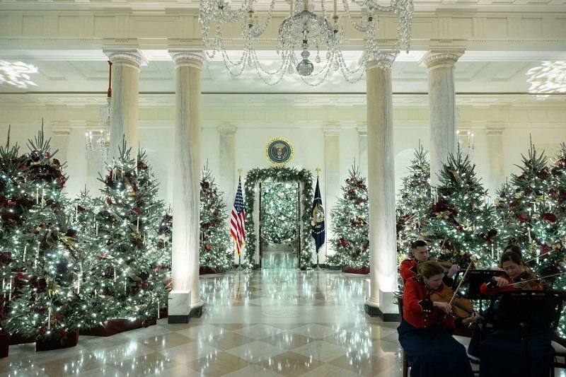 Белата куќа има 51 божиќни елки и 75 од препознатливите божиќни венци на Трамп. Венците имаат класични црвени машнички и висат пред прозорците на Белата куќа.