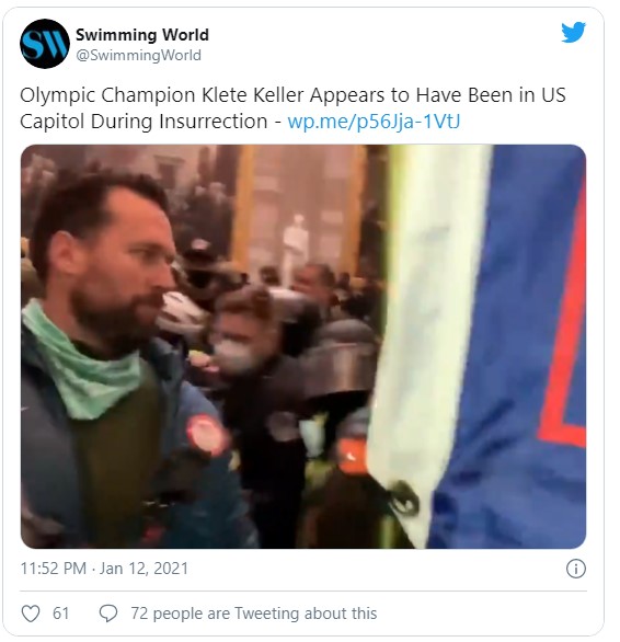 Меѓу обвинетите е и олимпискиот шампион во пливање Клете Келер. 38-годишникот освои два штафетни златни медали како дел од тимот на Мајкл Фелпс на Олимписките игри во 2004 и 2008 година. Обвиненијата за свесно влегување или останување во затворена зграда, неуредно однесување во зградата на Капитол и попречување на спроведувањето на законот беа поднесени против Келер во судот во Вашингтон ДЦ во средата.