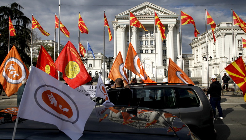 „Ќе биде уште порадикално, ќе биде многу помасовно затоа што денеска беше само симболично. Нека размислат, доставивме до нив барање да направиме еден разговор на фер основа каде што ќе се почитуваме меѓу себе не од позиција на власт, туку како социјални партнери како што е секаде во Европа“, потенцираше Ралковски. (Фото: Б. Грданоски)