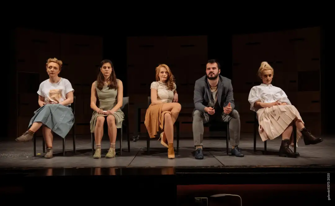 Улогите во претставата ги толкуваат актерите Сара Климоска, Сања Арсовска, Емилија Мицевска, Наталија Теодосиева, Трајанка Илиева – Вељиќ, Игор Ангелов, Исмет Шабановиќ и Филип Трајковиќ.