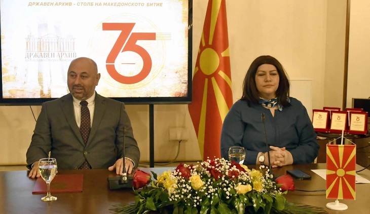 „Столб на македонската држава, колективна меморија“ е мотото со кое Државниот архив на Република Северна Македонија денеска свечено одбележа 75 години од основањето во 1951 година, со указ на тогашната влада. По седум и пол децении постоење, предизвик на институцијата е дигитализација на документите. Директорот на Архивот, Димитар Богески, изјави дека прават анализи колку би ги чинело дигитализацијата не само на Државниот архив туку и на деветте подрачни одделенија во негов состав.