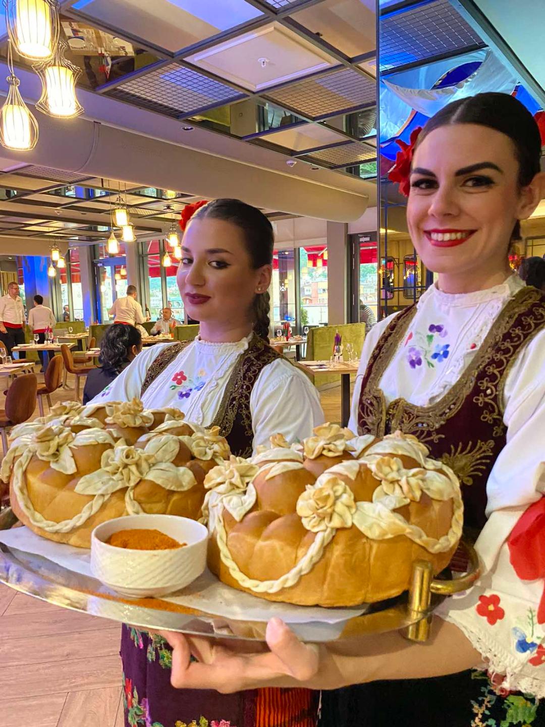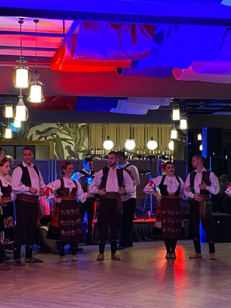 Српската вечер почна, отмено, со уникатен пречек: насмеани, млади, девојки , под будното око на Jелена Костадиновиќ, директор за продажба и маркетинг, облечени во традиционалната српска носија, ги дочекуваа гостите со погача, со звуци на српската музика. Заврши како „свадба“ со песните и ората од нашата младост и сегашност, во изведба на КУД „Кочо Рацин“.