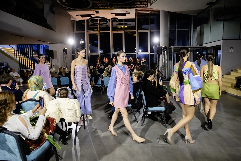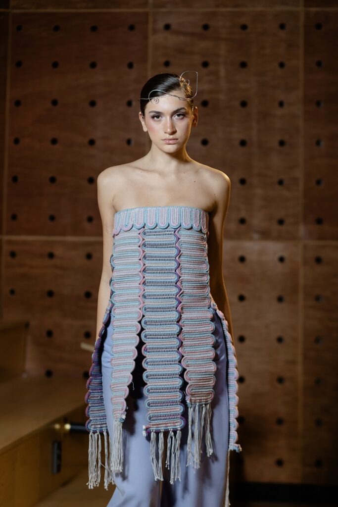 Ревијата, одржана во Innox Innovation Center, викендов, понуди поинакво, продлабочено доживување на модата преку спојот со хорска музика во живо. Женскиот младински хор на МКЦ ја изведе песната „Тишина“ од Тони Зен, чиј стих „лесно е да направиш галама, да те видам направи тишина“ создаде силен драматуршки момент. Пастелните тонови на колекцијата, нежната енергија на манекенките и атмосферата во просторот создадоа момент на колективна тишина и восхит. Шминката и фризурата беа дело на новата генерација стилисти, учениците од „Димитар Влахов“, под менторство на професорката Ферихан Махмуд-Кека.