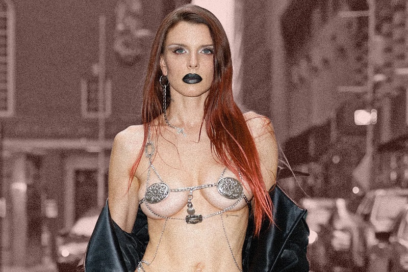 Њујорк- Џулија Фокс, стилската икона позната по поместувањето на границите со својот моден избор, даде храбра модна изјава во вторникот вечерта за време на Модната недела во Њујорк.