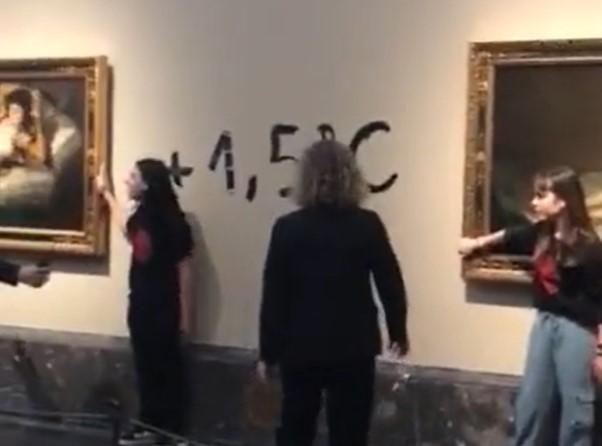 Две еко-активистки си ги залепија рацете на рамката на две дела на Франциско Гоја во музејот Прадо во Мадрид во знак на протест против „недејствувањето на властите“ против глобалното затоплување