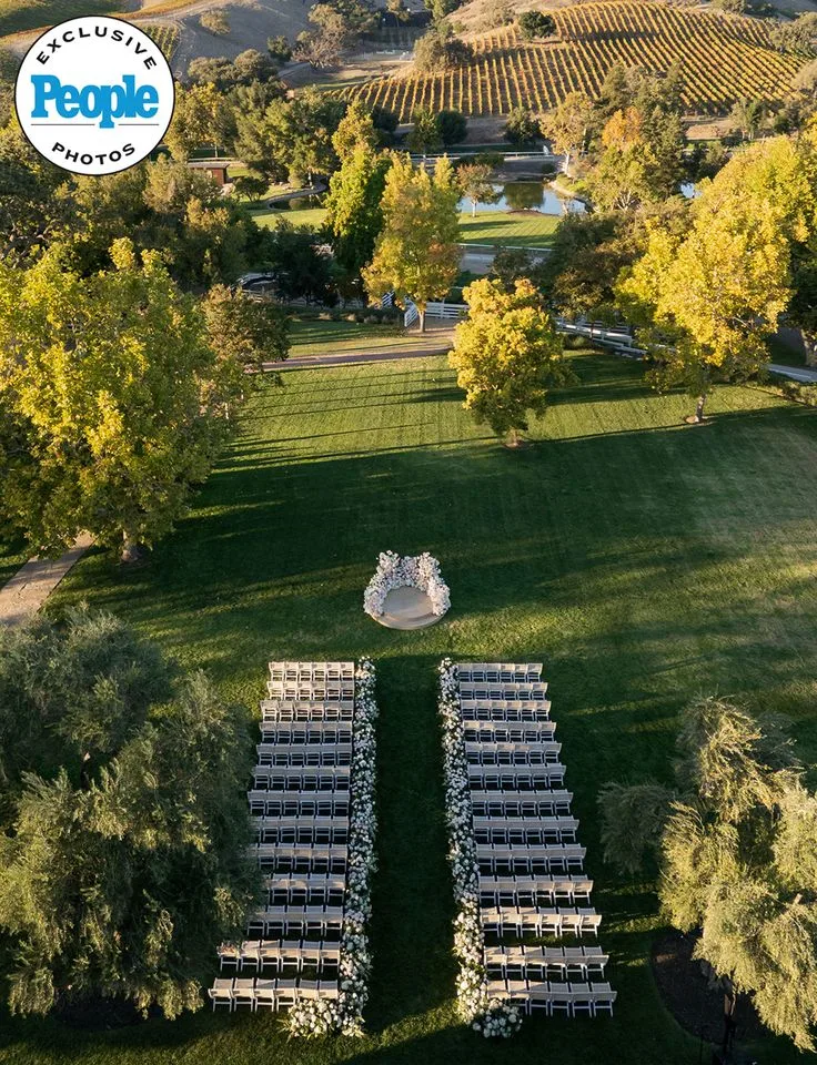 На церемонијата на отворено, одржана непосредно пред зајдисонце, присуствуваа нешто повеќе од 100 од нивните најблиски семејства и пријатели, вклучувајќи ги и нивните деца.