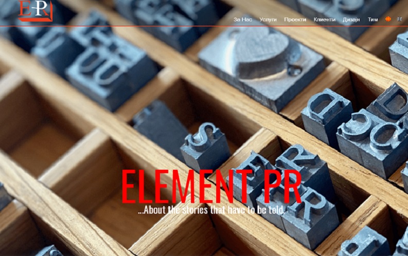 Со седиште во Скопје, Елемент ПР е агенција за интегрирани комуникации со повеќе од 12 години искуство во секторот за односи со јавноста и корпоративните комуникации. Специјализирана е за односи со медиумите и кризна комуникација, и има работено со повеќе од 100 меѓународни и домашни брендови кои покриваат широк опсег на индустрии. Со своите услуги ги покрива и Албанија и Косово, со што го зајакнува присуството на своите клиенти и во делови од Западен Балкан.