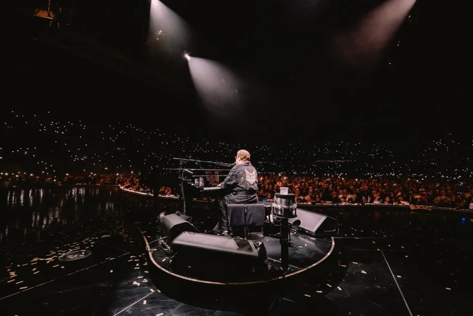 Кон крајот на концертот, Елтон на публиката им раскажа за неговите „52 години чиста радост свирејќи музика“.