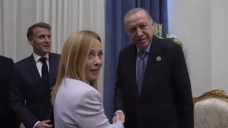 На маргините на мировниот самит за Газа во Египет, турскиот претседател Реџеп Таип Ердоган, италијанската премиерка Џорџија Мелони и францускиот претседател Емануел Макрон беа снимени како разговараат.