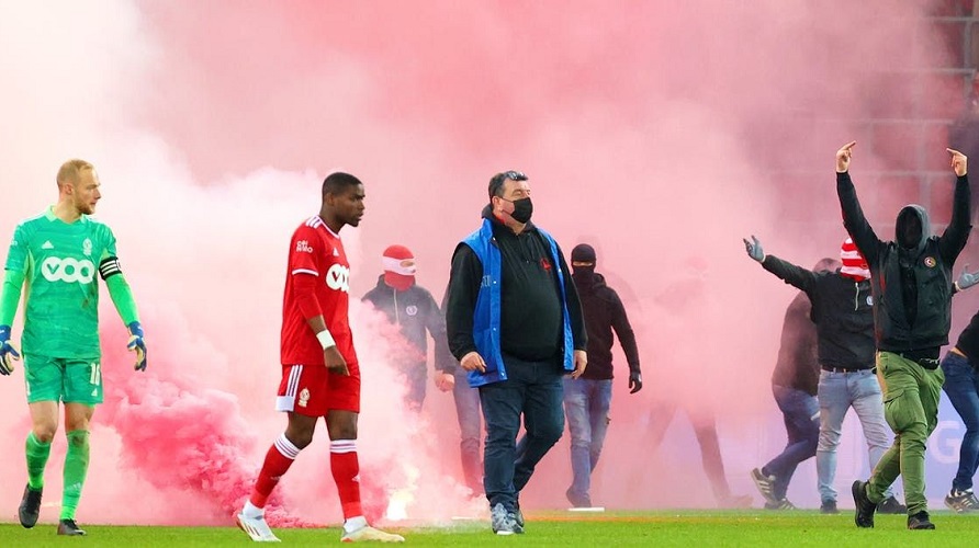 Претходно во неделата инциденти го одбележаа и градското дерби меѓу Бершот и Антверпен, откако навивач на гостинскиот тим го претрча целиот терен и фрли бенгалски факел кон трибината на која беа сместени навивачи на противничката екипа.