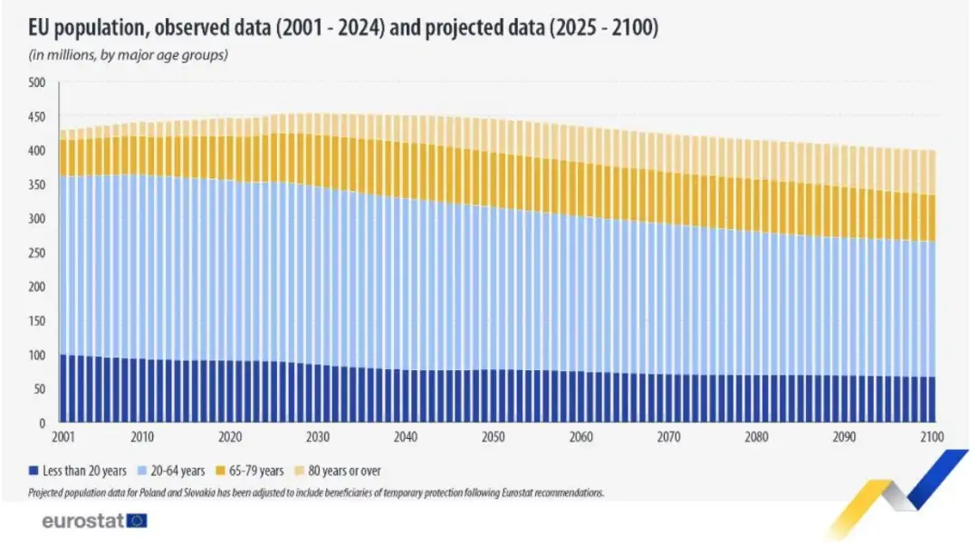 Дополнително, старосната структура на населението на Унијата ќе се промени. Бројот на стари лица ќе продолжи да расте, а на младите и работоспособните да се намалува.