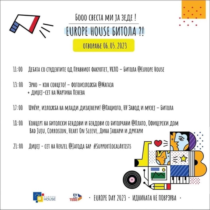 Отворањето го означува почетокот на активностите на Денот на Европа 2023 година на Делегацијата на Европската унија. Отворањето на Europe House ќе вклучува најразлични активности, а започнува со дебата со студентите од Правниот факултет при Универзитетот „Св.Климент Охридски“, потоа се сели на Широк Сокак, Магаза и Патио каде што ќе бидат отворени две изложби и завршува со концерт на локални бендови на платото на Офицерскиот Дом и диџеј сет во Бар Јагода.