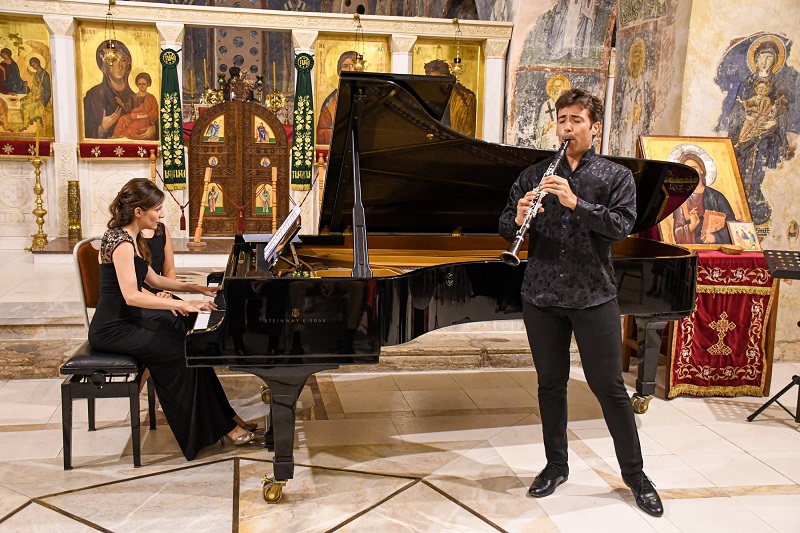 Вчерашната Вечер на Европската унија на „Охридско лето“ беше одлична можност да се ужива во звуците на кларинетот и пијаното преку извонредниот концерт на младите и талентирани уметници, Шпанецот Пабло Бараган и француската пијанистка Елоиз Бела Кон.