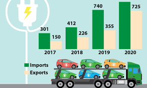 Извозот и увозот на електрични и хибридни електрични автомобили во ЕУ продолжи да се зголемува постепено. Во споредба со 2017 година, извозот на електрични и хибридни електрични автомобили надвор од ЕУ се зголеми за скоро пет пати од 150 илјади извезени автомобили во 2017 година на 725 илјади во 2020 година, додека увозот од надвор од ЕУ скоро тројно се зголеми од 301 илјади увезени автомобили во 2017 година на 892 илјади во 2020