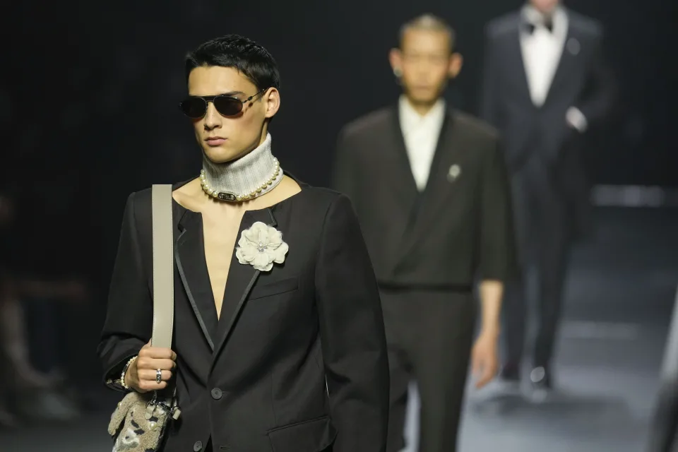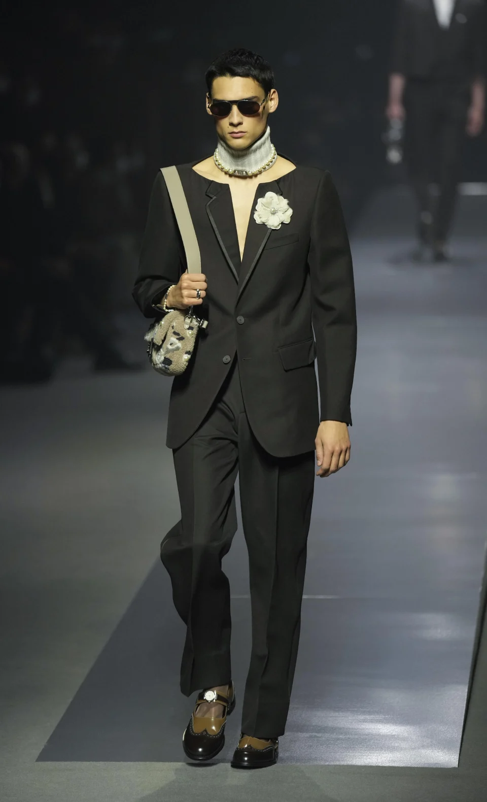 Фенди не е првиот што става бисери на мажите. Модната куќа исто така го продолжи трендот на мали чанти – заборавете го паричникот и најдете џеб за телефонот – кои мажите ги носеа на синџири.