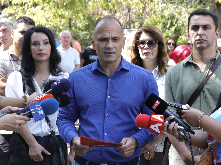 – Денес сум тука во поддршка на наставниците и просветните работници кои дојдоа да испратат порака на незадоволство од одлуката на ВМРО-ДПМНЕ да ја прекине политиката на раст на плати. Владата нема оправдување што наставниците ја започнуваат школската година без покачени плати, понижени и запоставени изјави претседателот на СДСМ, Венко Филипче.