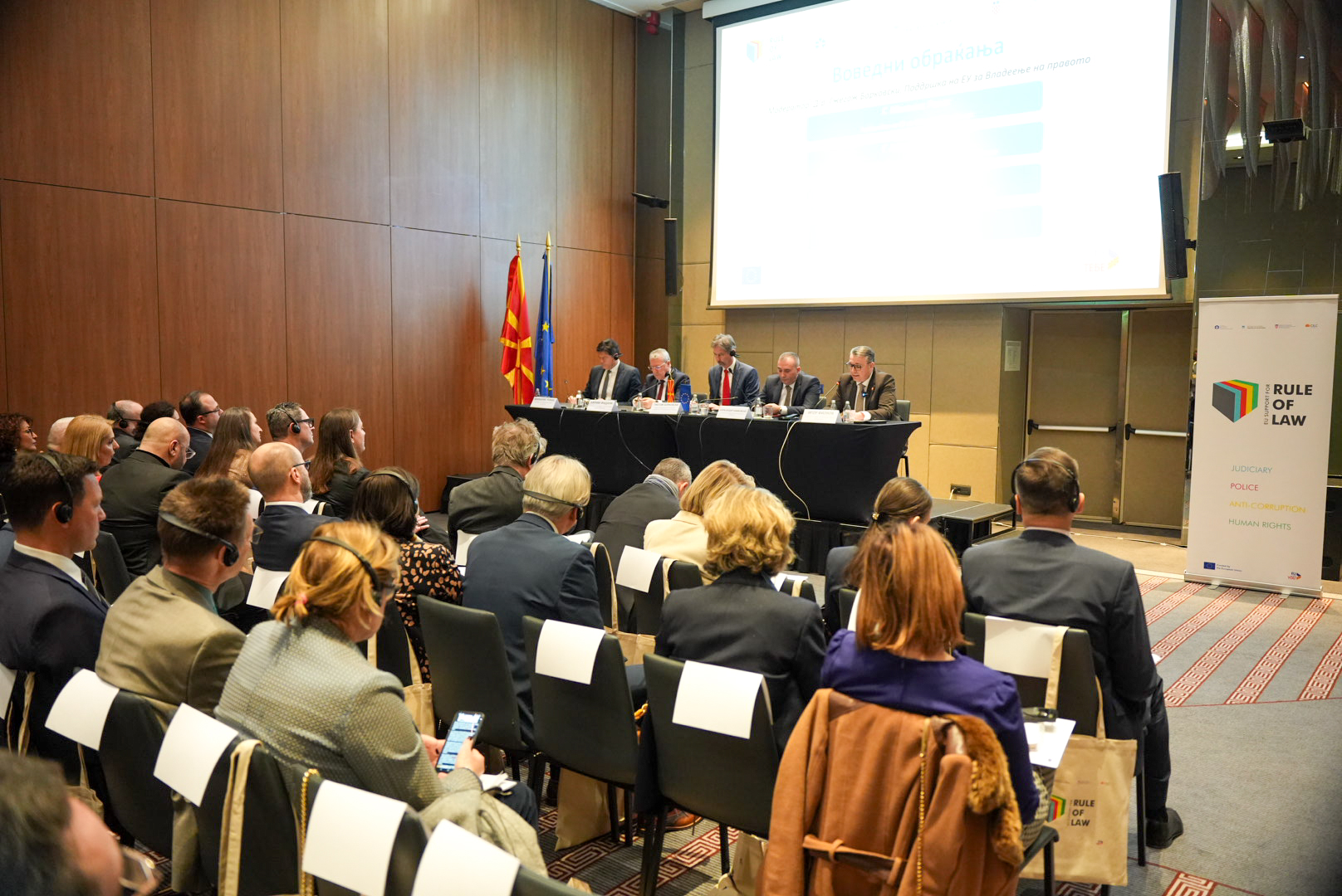 Во расправата учествуваше и евроамбасадорот Михалис Рокас кој потсети дека во извештајот на Европската комисија судството добило оценка „нема прогрес“ и дека нивото на усогласеност со тоа на ЕУ е „умерено“. Според него, независноста и ефикасноста на судството не се две различни патеки туку одат една до друга, заклучувајќи дека новиот буџет утврден од власта не е доволен за да се спроведе реформата и дека тоа ја слабее институционалната независност и ги лимитира шансите за навремена правда. Тој нагласи дека во земјата се случиле серија одлагања во имплементација на реформите, потсетувајќи дека со новиот концепт за Планот за раст ЕУ не е донатор, туку „инвеститор“ во владеењето на правото, бидејќи парите се врзуваат со резултатите.