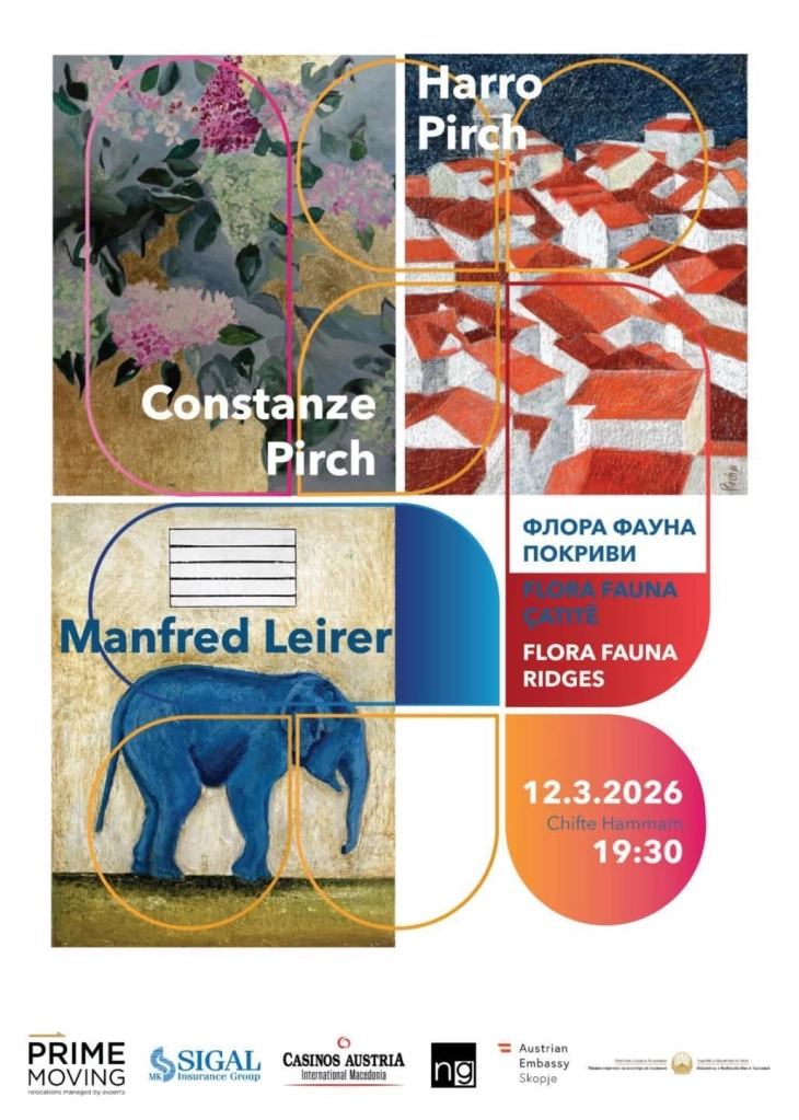 Во Чифте амам вечерва ќе биде свечено отворена изложбата на современи австриски уметници „Флора-Фауна-Покриви/Пирх-Лајрер-Пирх“, во организација на Националната галерија на Република Северна Македонија и Амбасадата на Република Австрија во Република Северна Македонија.