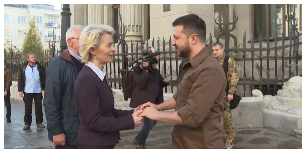 – Се вратив во Киев за да се сретнам со претседателот (Володимир) Зеленски и премиерот (Денис) Шмигал, им рече Фон дер Лајен на новинарите известувајќи за нејзината посета.