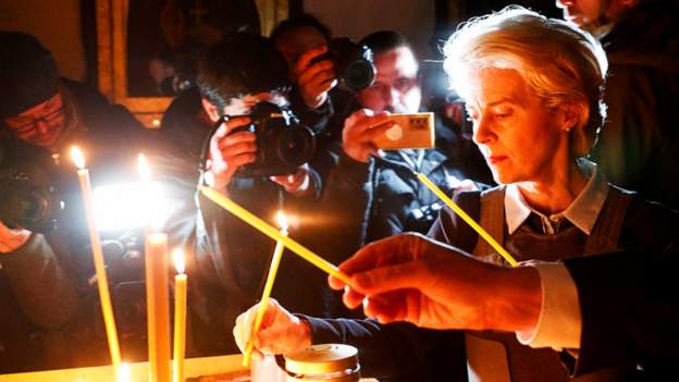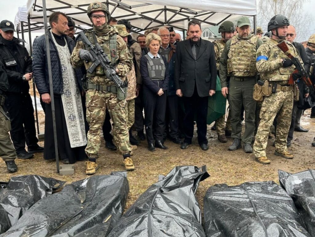 Урсула фон дер Лајен, претседателката на Европската комисија, го посети градот Буча во близина на Киев во северна Украина. Буча беше градот во кој беа пронајдени тела на цивили кои лежат на улица по повлекувањето на Русија.