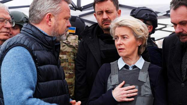 „Овде се случи незамисливо“, рече Фон дер Лајен за време на нејзината посета. „Го видовме суровото лице на војската на Путин“.