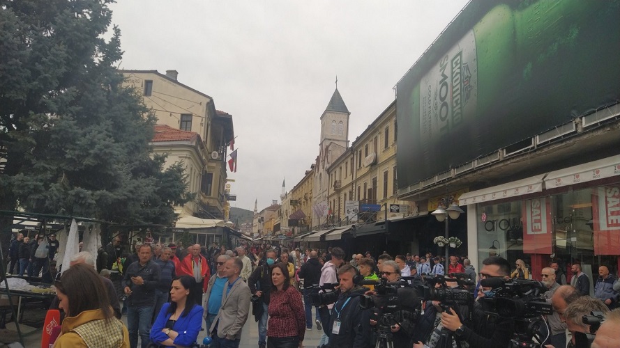 Битолчани денеска во голем број се собраа во центарот на градот проестирајќи против отварањето на бугарскиот клуб „Ванчо Михајлов ВМРО“.
