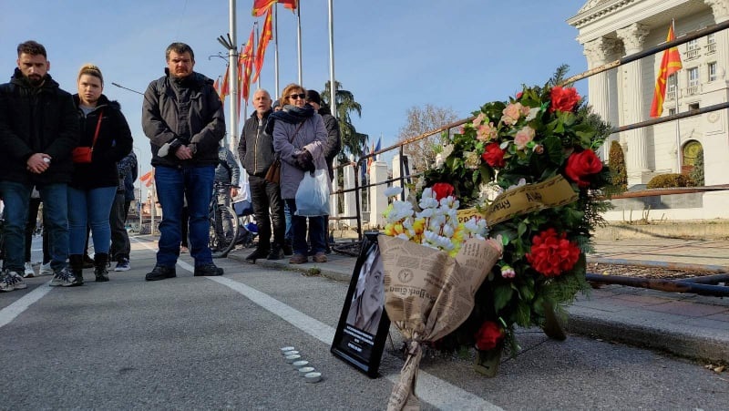 Пред неговата слика запалија свеќа, донесоа букети цвеќе и со минута молк и наведнати глави се простија од Благојче.