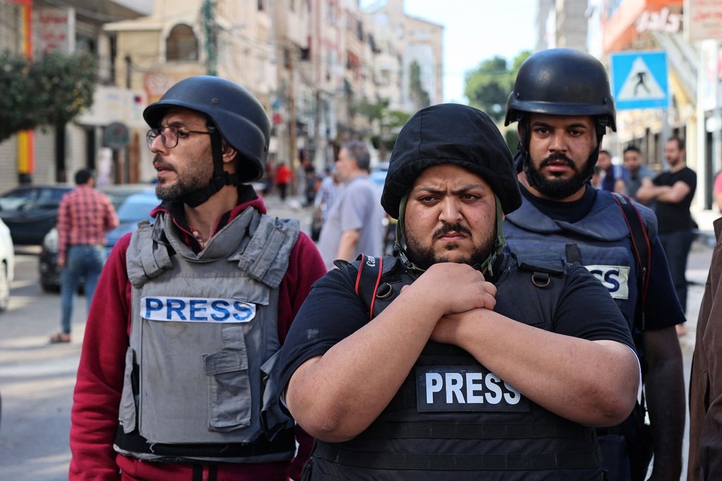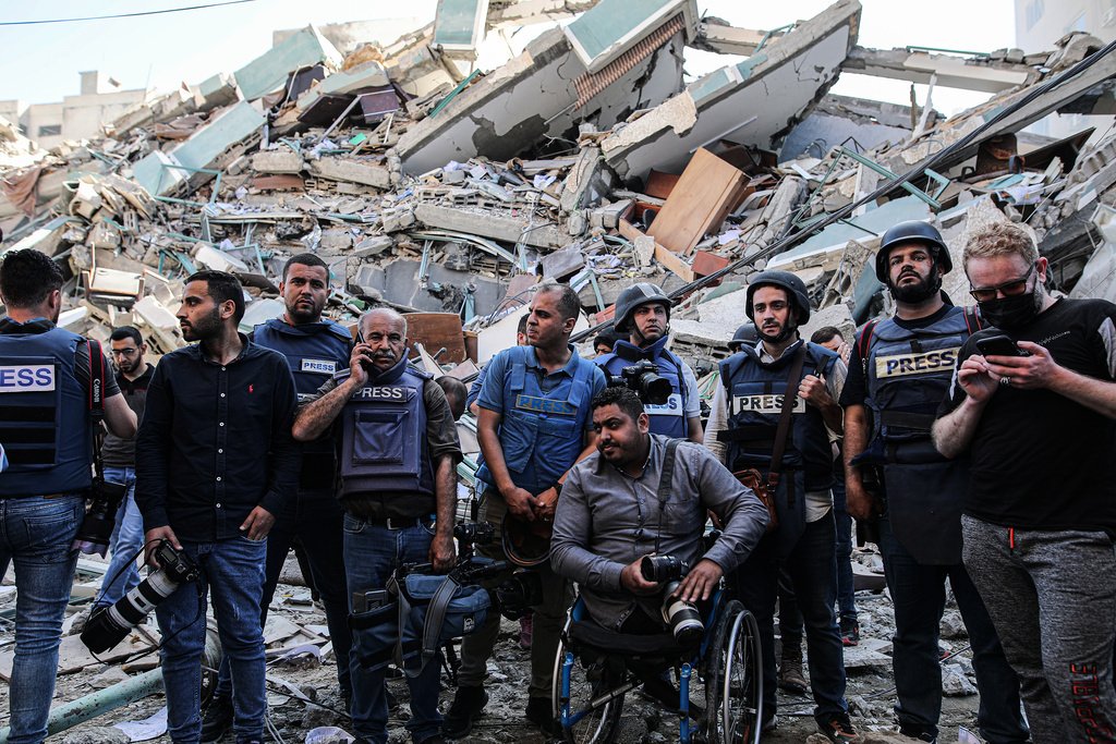 Во еден од израелските напади врз Газа, што според премиерот Бенјамин Нетанјаху тешко ќе престанат, беше разурната до темел и редакцијата на агенцијата Асошиетед прес. Зо знак на протест новинарите излегоа на улица и направија фото сесија од која се гледа лудилото на тоа што се случува на релација Израел и Палестина.