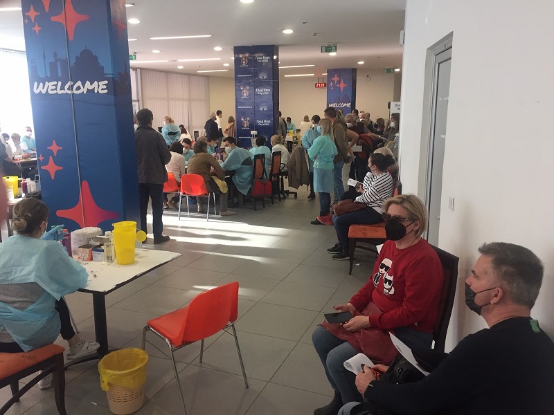 На фотографиите ви прикажуваме дел од атмосферата пред и во местата за вакцинирање, како и на граничниот премин Табановце, каде што претпладне се чекаше по околу 40 минути за излез од земјава, а вечерва колоните возила се во спротивната насока – за влез во Северна Македонија.