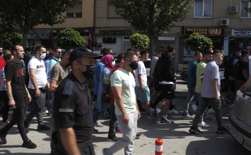 Инаку, откако пристигнаа пред ковид-центарот, учесниците на собирот се приближија до остатоците од изгорената болница, при што на неколкумина им беше дозволено да влезат и да положат цвеќе.
