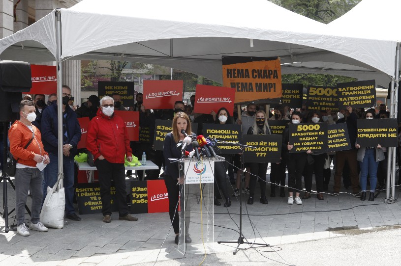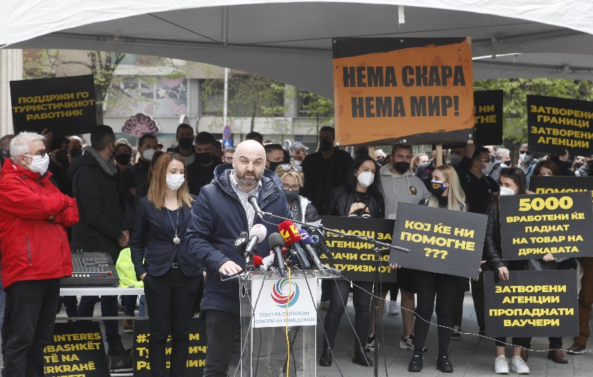 Членовите на Туристичко-угостителската комора, претставници на угостителските објекти, ноќни клубови, ресторани за свадби, игротеки, туристички агенции, туристички водичи и превозници, денеска на пладне пред Министерството за финансии започнаа протест преку кој бараат континуирана финансиска поддршка за спас на овие дејности. Под мотото „Ќе можете ли“, ги повикуваат надлежните институции итно да ја обезбедат бараната финансиска поддршка.