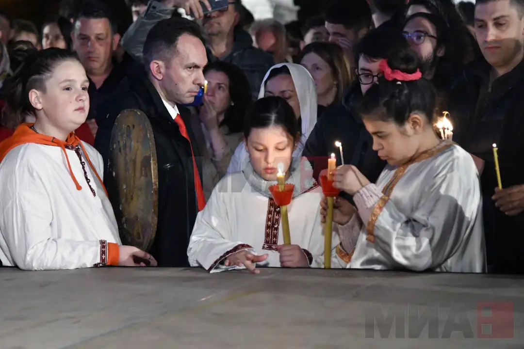 По свеченото Објавување на Воскресението, следи Пасхалната Литургија, со која чиноначалствува Неговото Блаженство, Архиепископот Охридски и Македонски г.г. Стефан.