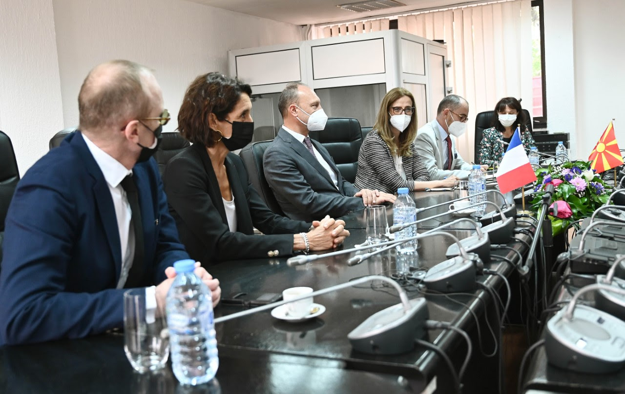 Министерот за внатрешни работи Оливер Спасовски денеска во МВР остварил работна средба со амбасадорот на Франција Сирил Бомгартнер и директорката за меѓународна соработка на МВР на Франција, Софи Ат. Средба беше искористена за потпишување на Протоколот за спроведување нa Спогодбата за преземање на лица кои престојуваат без дозвола, за чие навремено усогласување во голема мерка се заслужни експертите на двете страни.