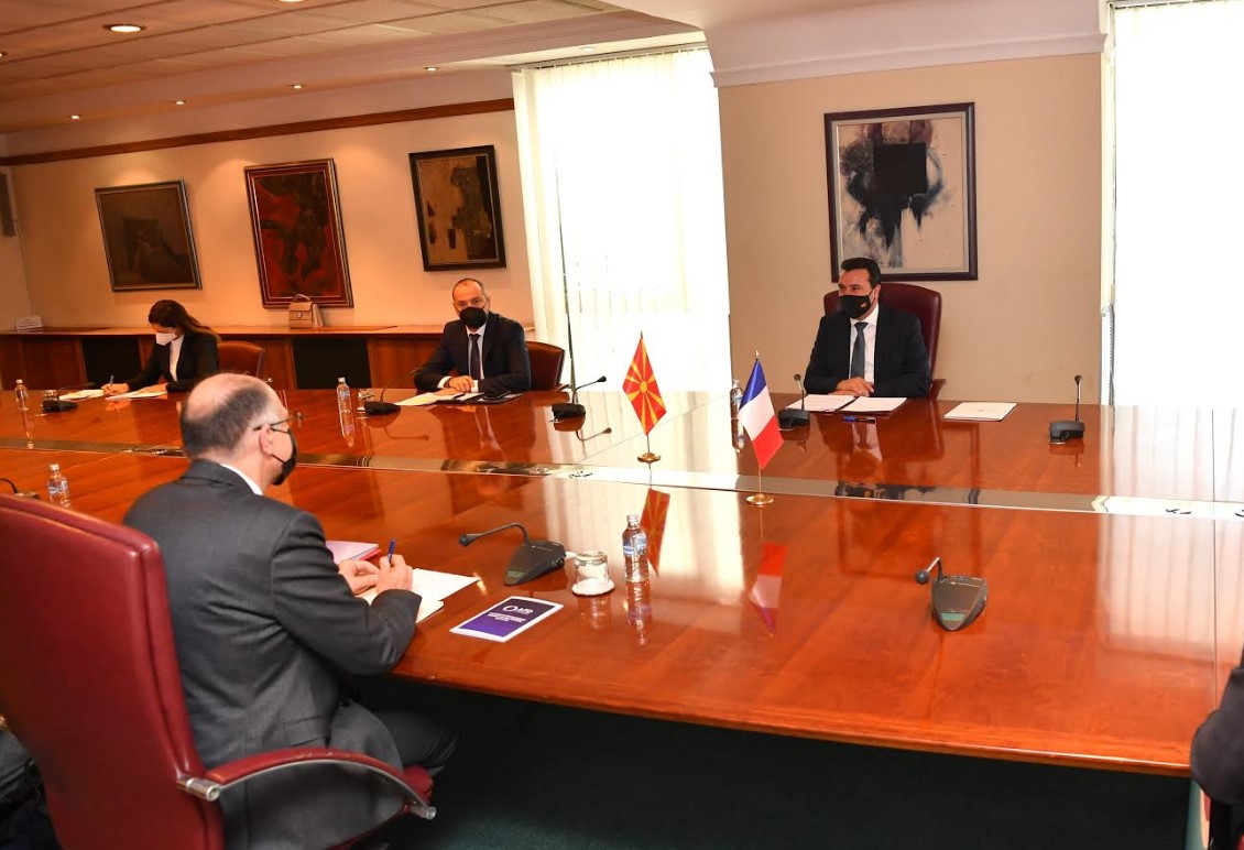 На средбата, на која присуствуваше и заменик-претседателот на Владата задолжен за економски прашања Фатмир Битиќи, премиерот Заев изрази задоволство од неодамна потпишаниот договор за соработка со Француската агенција за развој, и истакна дека овој договор е од значење како дополнителна поддршка во достигнувањето на европските стандарди во нашата земја и истовремено претставува силен сигнал за зајакнување на билатералните односи меѓу Северна Македонија и Франција.
