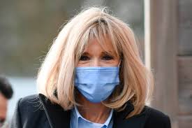 Макрон беше облечена во сини капут, панталони и чизми на Луј Витон со електрични сини кожни нараквици што одговараа на бојата на нејзината маска за лице.