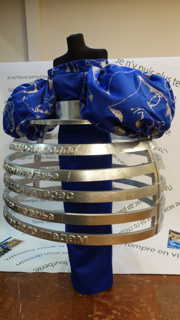 Модните дизајни на студентите од Технолошко-металуршки факултет – Институт за дизајн и инженеринг на облека во Скопје, инспирирани од комедиите во стихови на Молиер кои се класика во светската литература пристигнаа во Францускиот институт во Скопје – и како презентација и како декор во излогот.