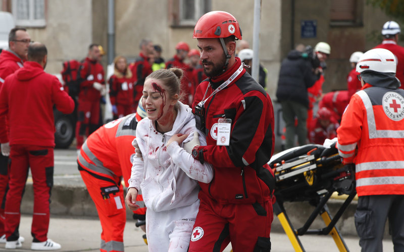 Со симулација на прва помош при итна ситуација – земјотрес, Црвениот крст денеска кај Градски Парк во Скопје ја одржа вежбата „Хуманитарен одговор 2023“.