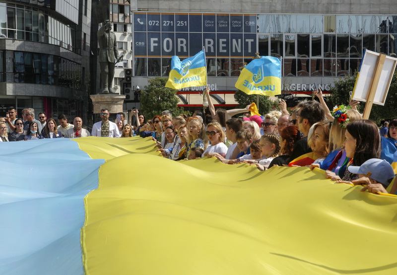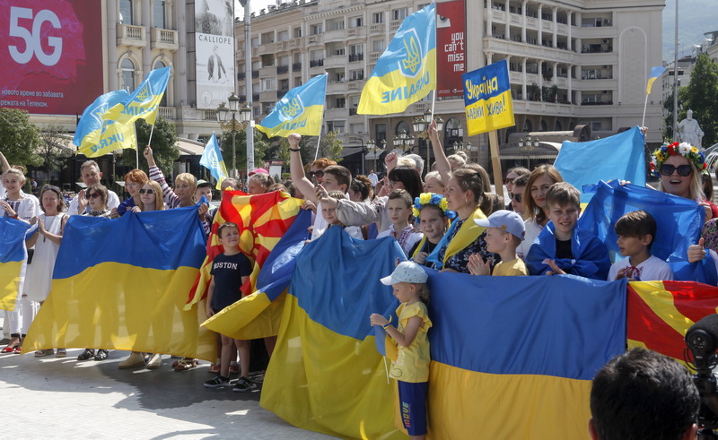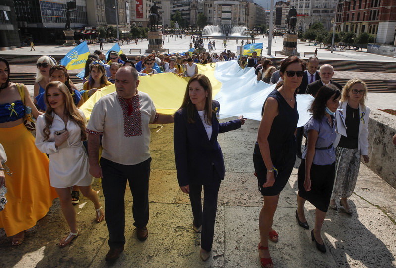 (Галерија) Денот на независноста на Украина одбележан на плоштадот „Македонија“ во Скопје