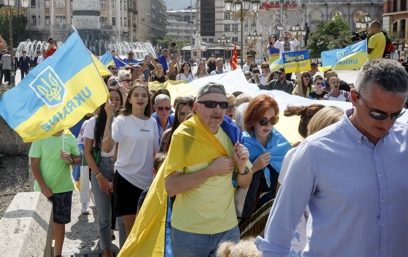 На одбележувањето поддршка за Украина дадоа и амбасадорите на Германија, Соединетите Американски Држави, Холандија, Шведска во Северна Македонија.