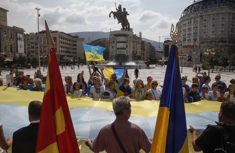 (Галерија) Денот на независноста на Украина одбележан на плоштадот „Македонија“ во Скопје