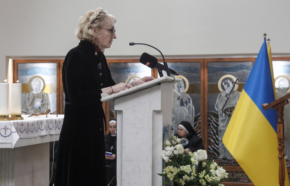 На комеморацијата се обрати и амбасодорката Лариса Дир, која меѓу другото, рече дека на 24 февруари се навршуваат четири години од почетокот на целосната инвазија и 12 години од отпор кон руската агресија. „Украина опстана, ја зачува Независноста и му докажа на светот: Украина се бори“.