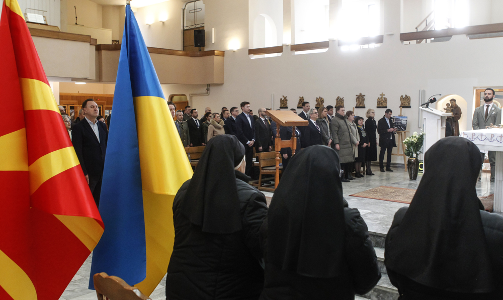 Во присуство на Украинци кои престојуваат во нашата земја, дипломати, воени аташеа, политичари и тн, комеморацијата почна со интонирање на украинската и македонската химна, а со минута молк беше одадена почит на жртвите на агресијата.